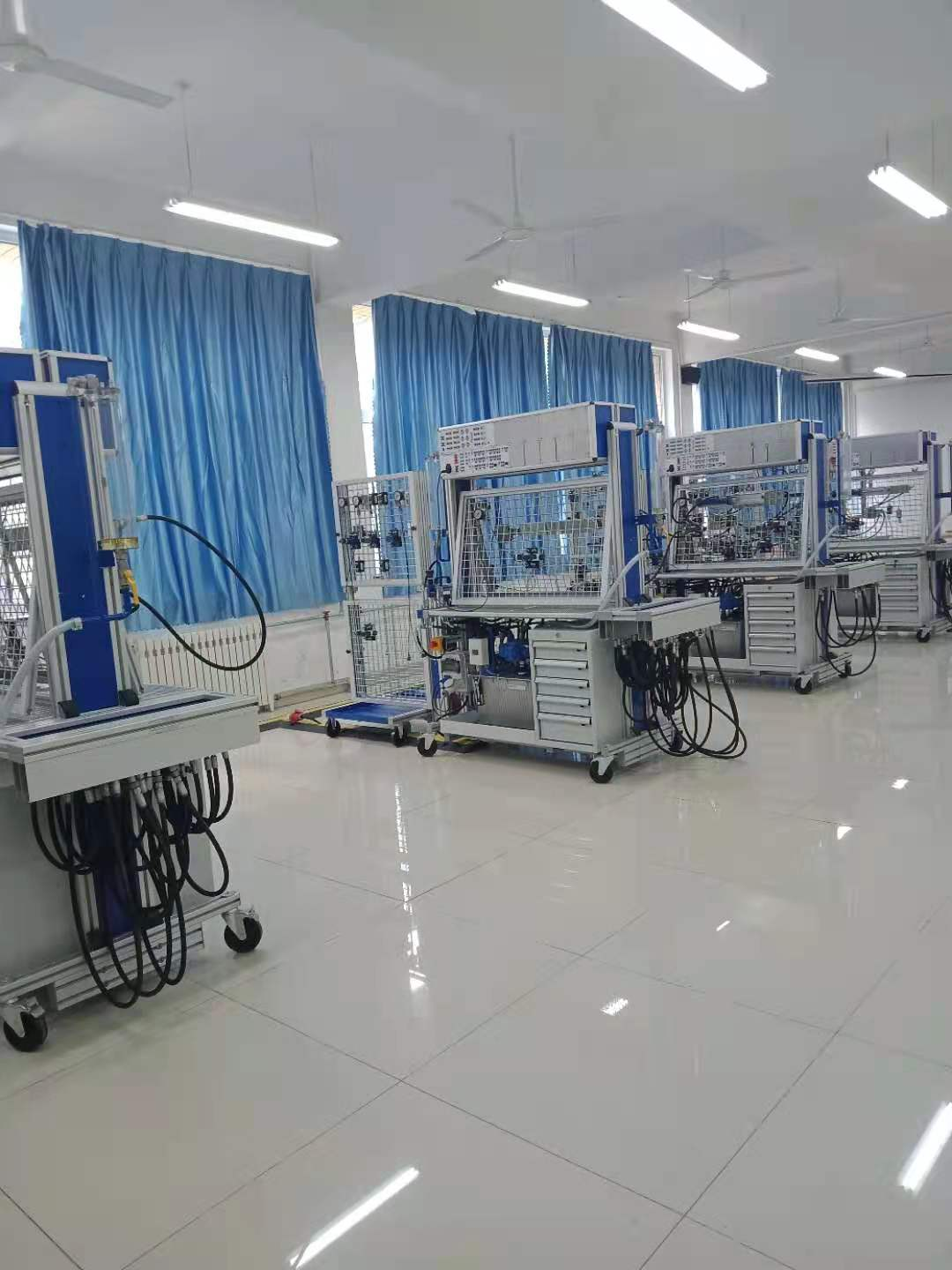 液压创新实训室主要设备共有八套WS290液压教学培训装置,每台设备配备博世力士乐工业标准的液压基础元件,可以进行控制回路和工程项目的系统设计与组装调试,4台双面液压元件存放小车,液压比例技术4套件,液压伺服阀技术4套件等,是集元件认知、回路插装于一体的理实一体化教学实验台。