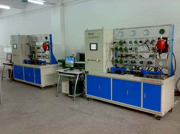 简介:液压传动实训室主要针对机械制造与自动化、模具设计与制造、机电设备维修与管理、汽车检测与维修、焊接技术及自动化等8个专业《液压与传动技术》这门课程的压力形成及液阻特性实验、液压泵性能实验、节流调速性能实验、液压系统调试性能实验等实验实训课程。设备于2007年6月份采购于秦川机床工具集团股份公司,QCS014B 可拆式多回路液压系统教学实验台一台、QCS003B试验台一台和QCS002试验台一台,后期又从巨能公司采购QSYQ-YP1型教学插装试验台4台,实验室设备总价值80多万。