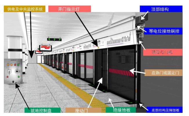 本实训产品由全高屏蔽门、PSL 控制盒、PSC 中央接口盘、乘客信息 PIS 屏等组成。其中全高屏蔽门采用地铁真实屏蔽门结构,可实现就地级操作与设备原理认知;PSL控制盒可实现站台级开关屏蔽门以及对屏蔽门的状态监控;PSC 中央接口盘可实现对整个车站屏蔽门开关状态的监控与参数调节;乘客信息 PIS 屏可实现列车到站信息提示、紧急广播信息的发布等。
