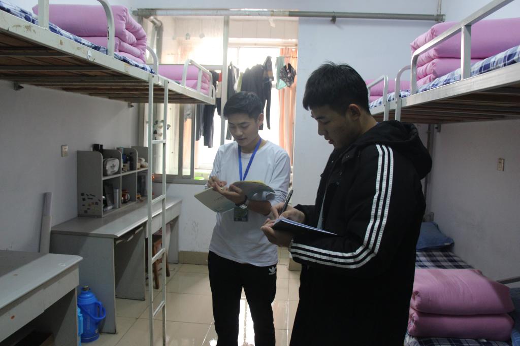 此次评选从卫生、学习、安全、文明四个方面出发。宿舍卫生评分要求为寝室整体清洁干净无异味、地面无垃圾、垃圾篓清洁、桌面物品摆放整齐有条理、洗漱生活用品等物品统一摆放、床铺整洁、床下鞋物统一摆放以及床上无杂物等。此外,对于宿舍易发生的安全隐患也进行了排查。