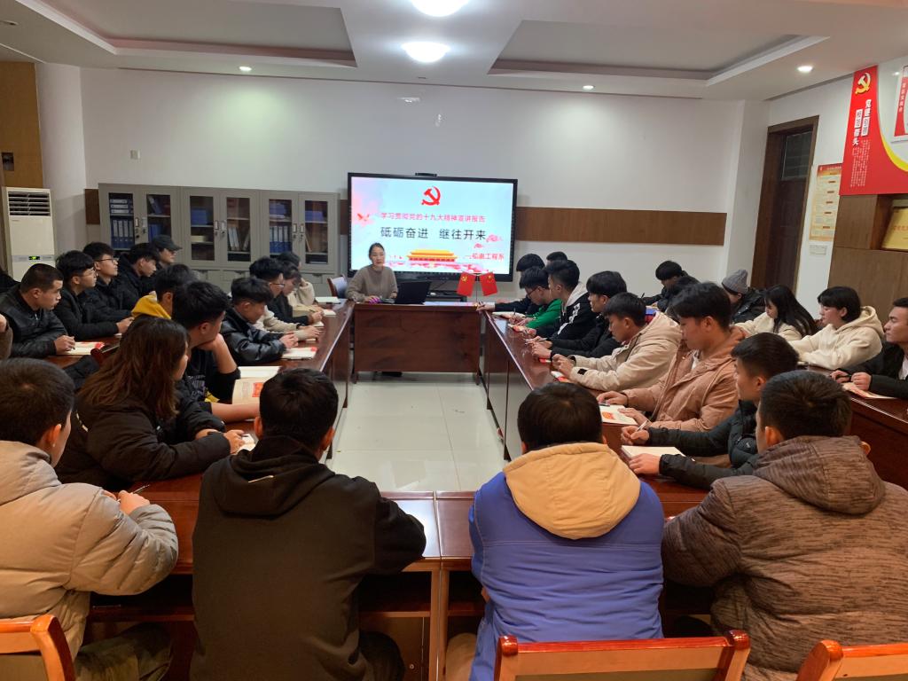 2019年12月29日,机电工程系员工党支部在科技楼811组织召开了新一期的入党积极分子党课培训,本次党课由机电工程系员工党支部书记裴娟同志主讲,党课的主题是“十九大精神宣讲—砥砺奋进,继往开来”,意在要求通过对十九大精神的学习,坚定同学们的理想信念,提高同学们的政治觉悟。