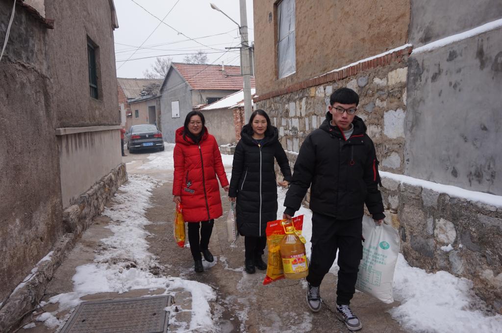 为深入贯彻国家对在校困难老员工的资助政策,为贫困员工及家庭送去温暖与关怀,2020年1月13日、14日,我系团总支书记裴娟老师、资助员范雯雯老师以及辅导员苏哲老师,深入淄博市淄川区太河镇东下册村以及山东省临沂市费县石井镇翼城村走访慰问了我系宋金柱同学和李士彪同学,为员工及其家庭送去了大米、花生油、面粉等慰问品,并代表公司送上了春节的问候和祝福。