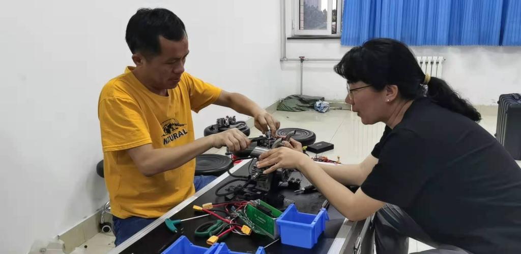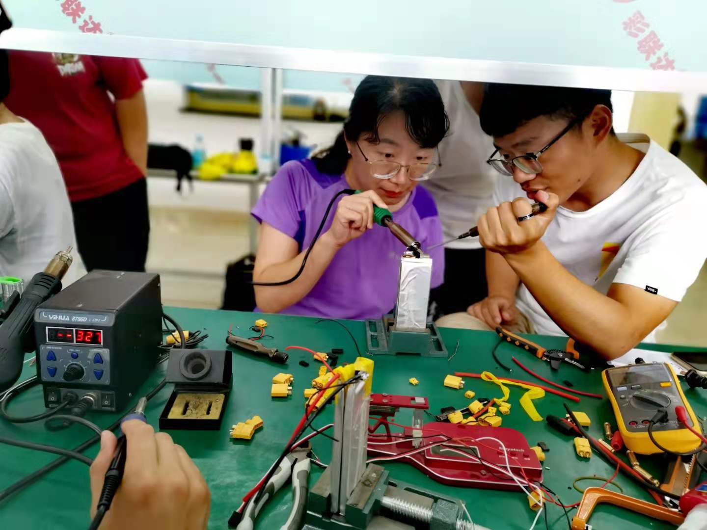 北京优云智翔航空科技有限公司、北方天途航空技术发展(北京)有限公司为各位老师准备了丰富的课程,培训内容包含四位悬停、八位悬停、定高自旋、八字航点、八字N/4弧和完整八字航线等无人机驾驶科目内容和直升机电机轴承更换、固定翼舵机安装与电子设备连接、多旋翼电子设备连接原理、直升机粗导线的焊接等无人机检测与维护科目内容。
