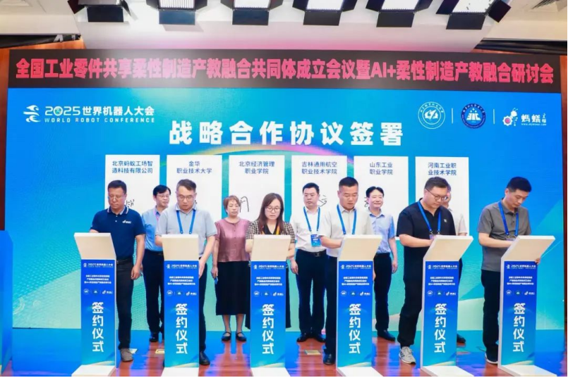 2025年8月9日,2025世界机器人大会“AI+柔性制造:推动人形机器人结构件制造创新”会议暨全国工业零件共享柔性制造产教融合共同体成立会议、Al+柔性制造产教融合研讨会在北京科技职业大学成功举办。本次会议汇聚高校、行业及企业的领导、专家及教师代表180余人,共商产教融合创新路径,共谋产教协同新篇章。